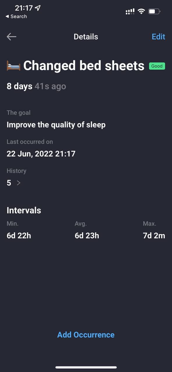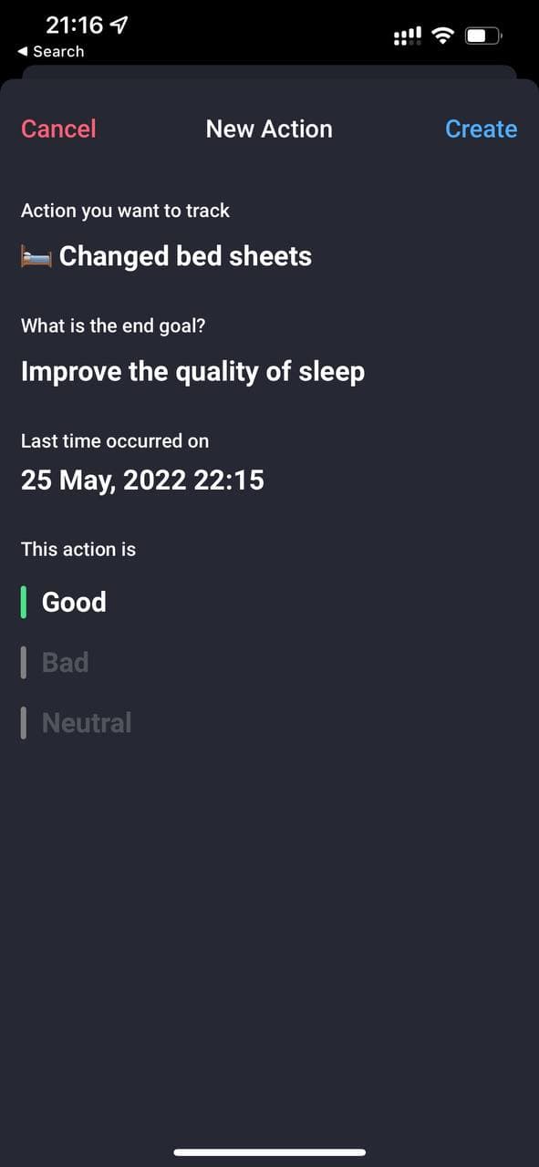 And it's pretty reasonable to track such activities like changing bed sheets or pillows, as they improve the quality of your sleep.
